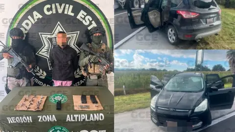 El presunto fue detenido en el kilómetro 4 del Libramiento a Matehuala, asegurándole una camioneta Ford Escape color negro, 11 artefactos metálicos utilizados para dañar neumáticos, un radio de comunicación y dos cargadores, uno abastecido con 12 cartuchos útiles y otro con cinco útiles.