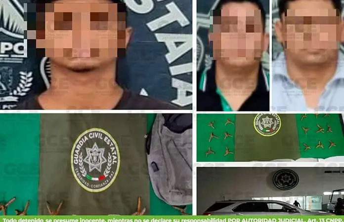 CIUDAD VALLES.- Agentes de la Guardia Civil Estatal, realizaron la detención de tres sujetos que traían droga y poncha llantas, al parecer integrantes de grupos delictivos que operan en la zona.