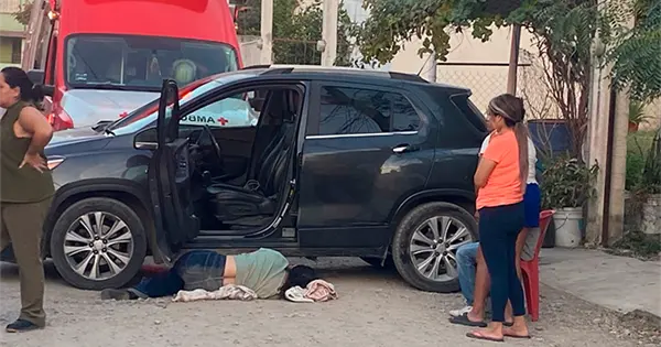 Los hechos ocurrieron en la calle Azalea casi esquina con avenida De las Flores, en el sector antes mencionado, donde los paramédicos de la Cruz Roja auxiliaron a Rocío, de 35 años de edad.