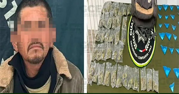 De acuerdo con la Secretaría de Seguridad y Protección Ciudadana, el sujeto se encontraba a inmediaciones de la mencionada delegación, y al efectuarle una inspección de seguridad, le encontraron 25 bolsitas con unas sustancia granulada con características de la metanfetamina conocida como "cristal", asimismo 37 dosis de una hierba verde y seca con características de la marihuana, sustancias prohibidas que presuntamente serían destinadas para su venta y distribución.