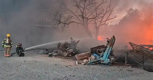 Las llamas alcanzaron grandes alturas ya que se quemaban pilas de litio
