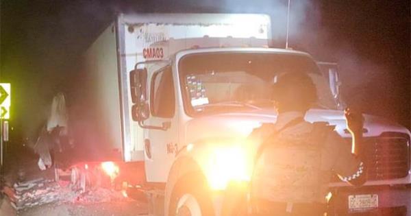 El chofer de un camión Freightliner blanco, se percató que salía mucho humo del área de la caja, y quiso llegar a la rampa de frenado, pero no lo consiguió, se orilló y descendió.