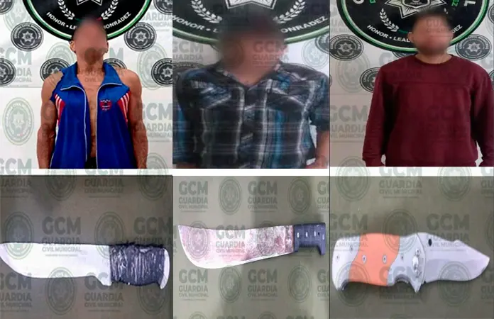 Fidel "N" de 53 años, fue detectado en Circuito Potosí Oriente, a la altura de la colonia Fracción Rivera, quien incurría en faltas administrativas, localizándole un utensilio con hoja metálica afilada semejante a un cuchillo. Por último, en la Avenida Eucaliptos, en la colonia San José, oficiales municipales tuvieron contacto con quien dijo llamarse José "N" de 38 años, quien incurría en faltas al Bando de Policía y Gobierno, descubriéndole una hoja metálica afilada con las características de un machete.
