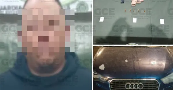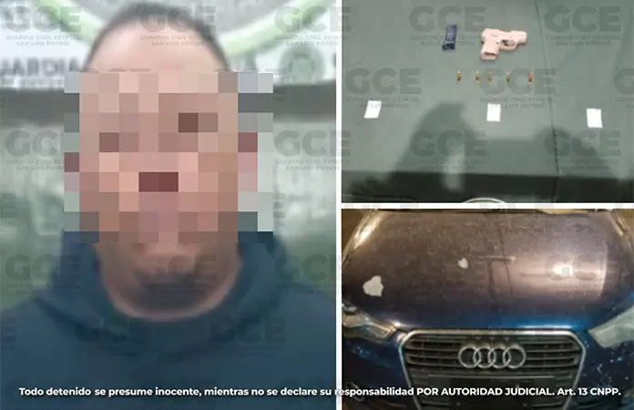 Según los hechos, los agentes estatales patrullaban la avenida mencionada y a la altura de la avenida Niño Artillero, en la Zona Universitaria detectaron un automóvil Audi color azul con placas de Jalisco, que era conducido en forma sospechosa y por lo tanto le marcaron el alto al conductor para la investigación respectiva.