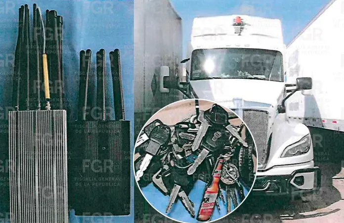 Al arribar al lugar, las autoridades ubicaron la unidad y realizaron una revisión de rutina, en la que aseguraron 31 llaves, de las cuales 25, al parecer, son de tractocamiones de diferentes marcas; seis más para candado, un estuche de plástico con seis desarmadores, una cámara HD y una licencia de transportista, entre otros documentos y objetos diversos, como dos inhibidores de señal, uno de ellos para 10 antenas y otro para seis, con funcionamiento electrónico. La persona detenida, Guillermo N., y los objetos asegurados, fueron puestos a disposición de la Fiscalía Federal en la entidad, instancia que inició la carpeta de investigación correspondiente.