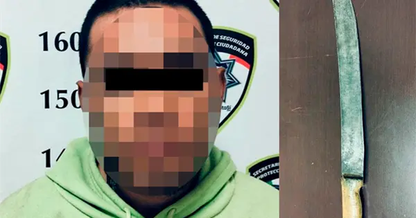 Como resultado de los recorridos preventivos de elementos de la Secretaría de Seguridad y Protección Ciudadana (SSPC), se efectuó el aseguramiento de un hombre que fue encontrado en posesión de un machete de 40 centímetros de hoja de acero.