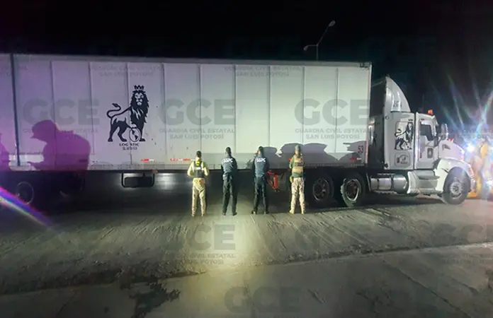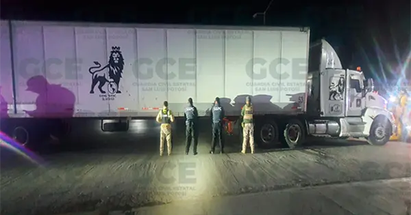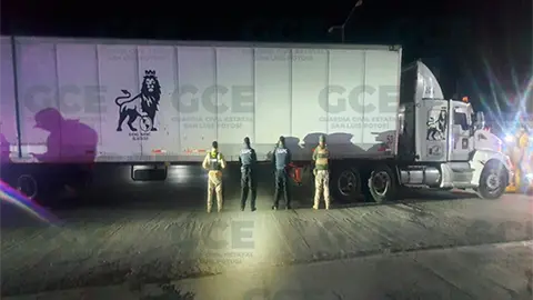 Un tráiler con semi remolque tipo caja seca que tenía alterado el número de serie, fue asegurado por elementos de la Guardia Civil Estatal quienes lo detectaron al pasar por un retén permanente que se instala en la carretera a Zacatecas.