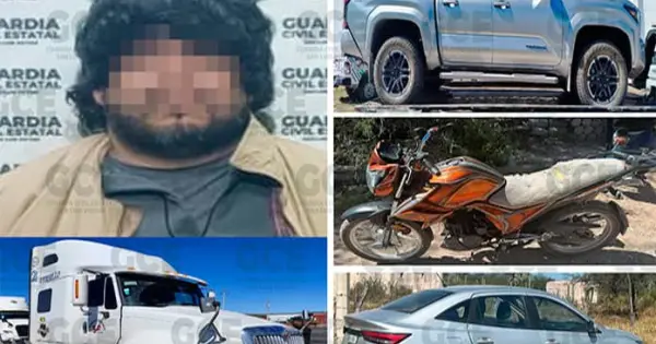 A su vez, en el municipio de Matehuala, dos vehículos fueron asegurados; el primero es un Chevrolet Aveo, modelo 2025, color gris, que había sido hurtado en esta misma región.