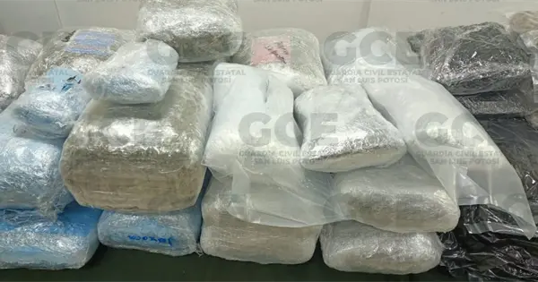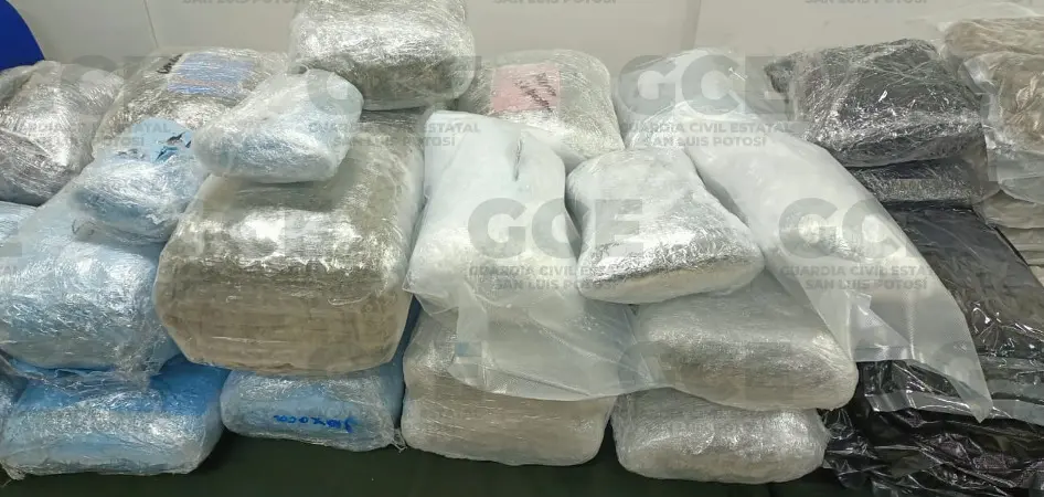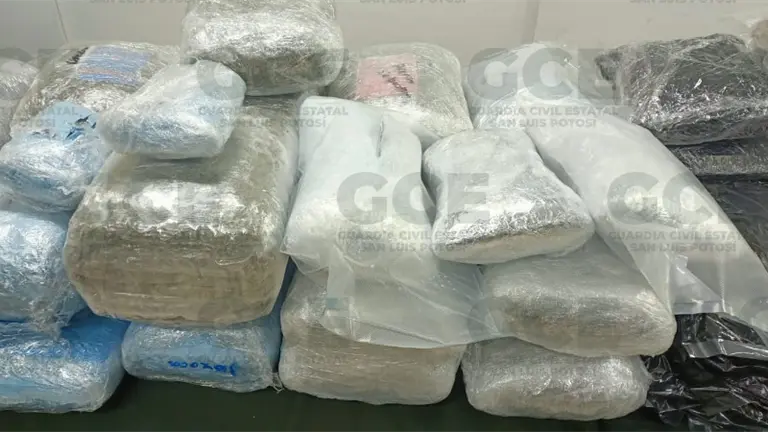 Elementos de la Guardia Civil Estatal, en coordinación con personal de la Secretaría de la Defensa Nacional, aseguraron droga y partes de un arma de fuego durante un operativo realizado en la comunidad de El Charquillo, en la capital potosina.