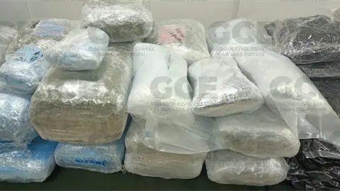 Además de la droga, fueron asegurados componentes de un arma de fuego larga, consistentes en un cañón con guardamano y una mira telescópica.