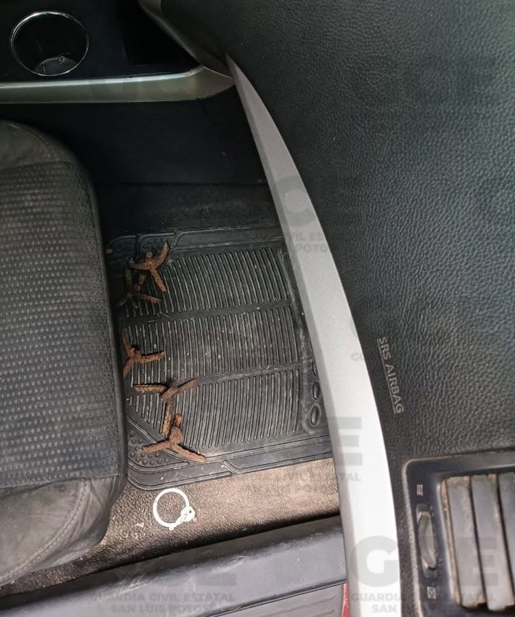 En un parte informativo, explicó que tras acciones de la SSPC en la Huasteca, agentes de la Guardia Civil aseguraron un automóvil en cuyo interior había artefactos metálicos y drogas.