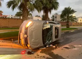 Fotos: Abandonan vehículo tras choque y volcadura en Sierra Leona