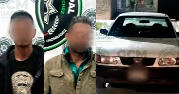 Después de dialogar con los sujetos, se identificaron como Martín “N” de 27 años y José “N” de 44, quienes mostraron una conducta evasiva, y apegándose al debido protocolo de actuación se consultó tanto su estatus legal como el del automóvil en Plataforma México. El resultado de la búsqueda mostró que el coche marca Nissan Tsuru de color blanco contaba con reporte de robo vigente.
