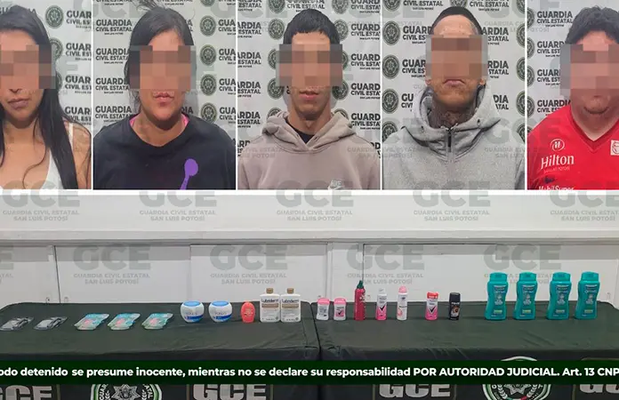 Como resultado de las acciones estratégicas implementadas dentro del "Operativo Galerías", elementos de la Guardia Civil Estatal (GCE) detuvieron a seis personas, consideradas objetivos prioritarios dedicados al robo a comercio, en la colonia Progreso, en la capital potosina.