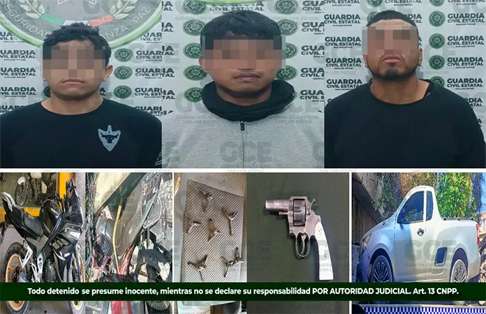 Tres presuntos "halcones" vinculados a un grupo delictivo, fueron capturados por elementos de la Guardia Civil Estatal en el municipio de Villa de Reyes, esto durante labores de vigilancia y patrullajes en la zona.