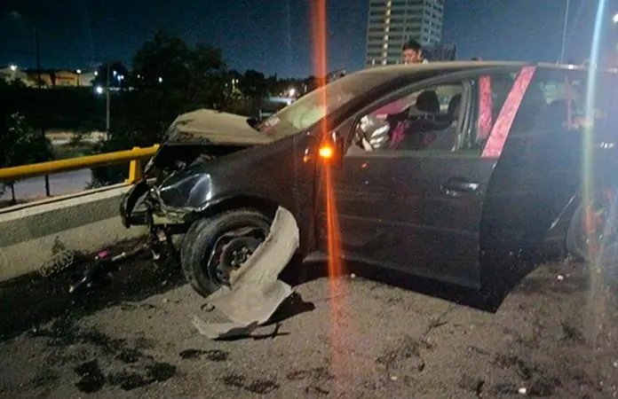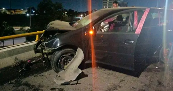 Cuando subió a la cima del puente de la avenida José de Gálvez, el conductor perdió el control del volante a la derecha, chocando de frente contra la contención metálica y de concreto ubicada en esa vía. A causa del fuerte golpe el carro quedó prácticamente destrozado de la parte frontal, aunque por suerte no se reportaron personas heridas en este caso.