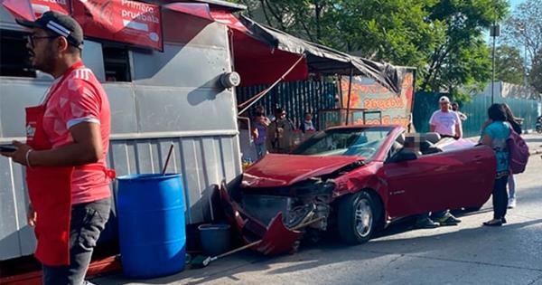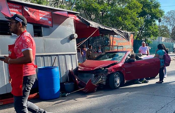 Un automóvil convertible cuyo conductor lo dejó encendido, empezó a rodar hasta impactarse contra un puesto de tacos en la avenida Nicolás Zapata, frente a la clínica 1 del IMSS; quedó prácticamente inservible, aunque al parecer no hubo lesionados en este caso.
