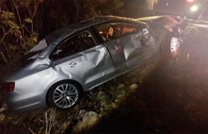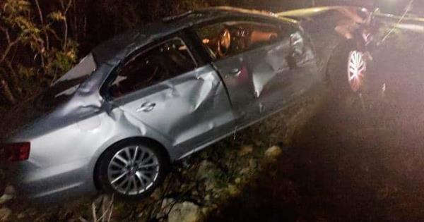 Se dio a conocer que un vehículo marca Volkswagen Jetta color gris, modelo reciente, volcó hacia un barranco y quedó entre las piedras.