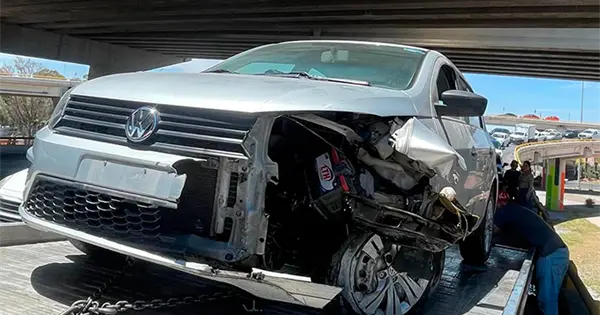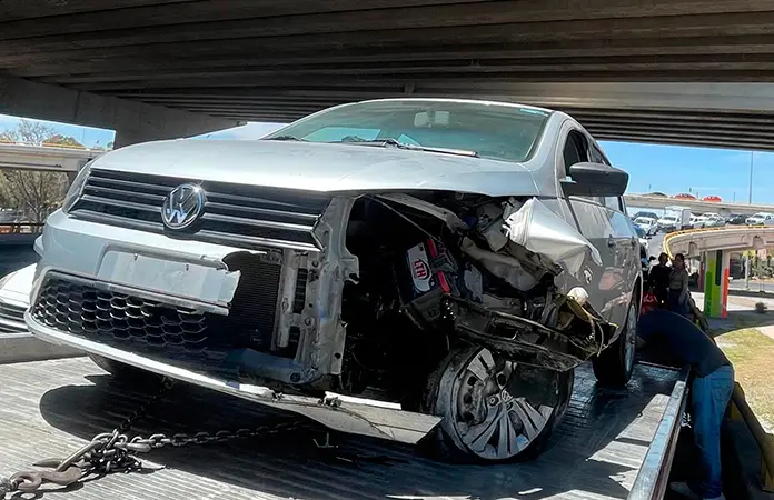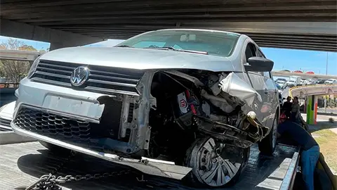 Cuando arribó al distribuidor Juárez, el conductor ascendió por el ramal para tomar hacia la carretera a México, en donde perdió el control del volante hacia su izquierda y así impactó la parte lateral delantera derecha contra el muro de contención, quedando totalmente inservible.