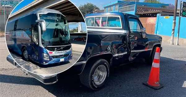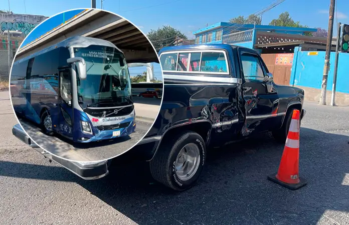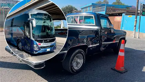 Fue al llegar a la cruce con la calle Zaragoza, en Soledad, en donde al parecer el chofer se pasó el alto y así chocó de frente contra el costado derecho de una camioneta Chevrolet tipo pick up de color azul, modelo antiguo, la cual iba a incorporarse a la mencionada arteria.
