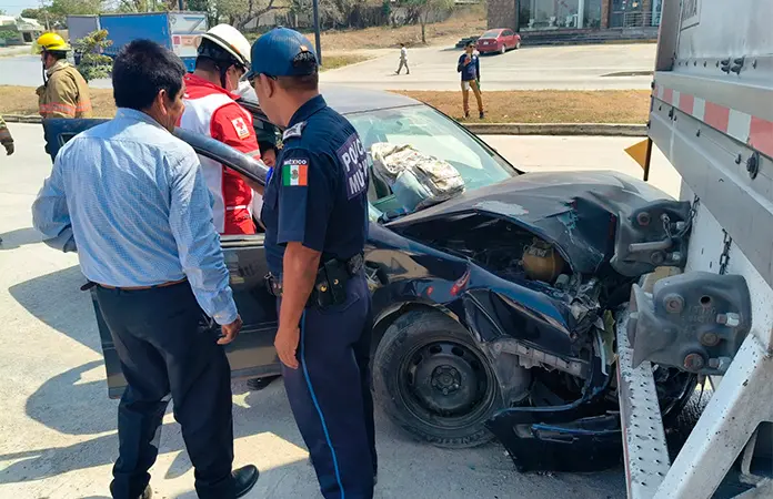 Debido al fuerte impacto, resultó lesionada la mujer que viajaba de copiloto en el sedán, identificada como María Ascención, de 36 años de edad, quien tuvo que ser auxiliada por paramédicos de la Cruz Roja, quienes la llevaron a una clínica.