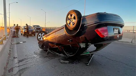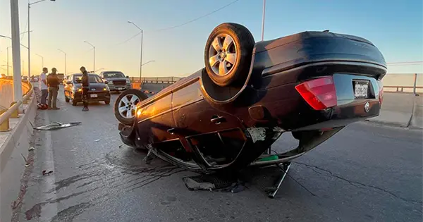 Al llegar a la cima del puente Peñasco, el conductor perdió el control del volante y así chocó contra la contención para luego volcar en su trayectoria errática impactó también contra dos otros dos automóviles, un Nissan March color blanco y un Hyundai gris, a los cuales les causó algunos daños materiales.