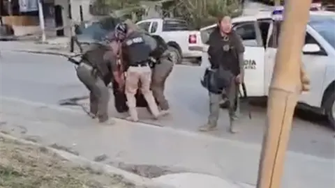 En imágenes compartidas en línea también se aprecia una patrulla tipo SUV con daños por proyectiles y, a unos metros, el cuerpo de una persona vestida de civil, que presuntamente se encontraba sin vida. Esta información no ha sido confirmada por autoridades.