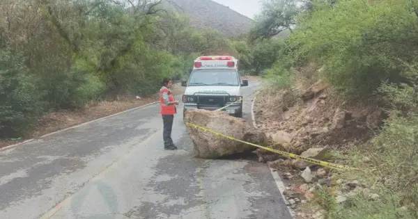 La Dirección de Protección Civil de la capital atendió el reporte de una enorme piedra que obstruyó la carretera Bocas-Ahualulco.