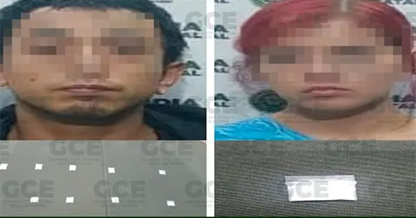 La pareja dijo llamarse Lizzet de 32 años de edad y Rubén de 26 años, a los que en la revisión les encontraron once dosis de cristal que traían ocultas entre sus ropas.