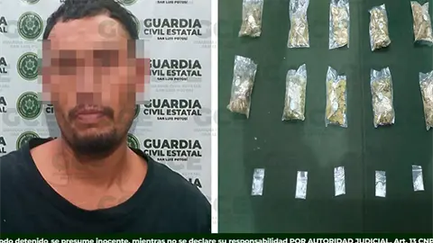 El sujeto dijo llamarse José "N" de 32 años de edad, domiciliado en el mismo municipio, al que se le encontraron entre su ropa 10 bolsas con marihuana y cinco dosis de "cristal", que al parecer andaba vendiendo.