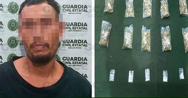 Un presunto vendedor de droga que operaba en el municipio de Villa de Reyes, fue capturado por elementos de la Guardia Civil Estatal quienes realizaban patrullajes de seguridad, le incautaron quince dosis de droga que andaba vendiendo en la zona.