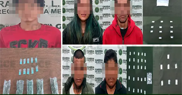 Como resultado de los recorridos de seguridad y vigilancia en distintos municipios de la entidad, elementos de la Guardia Civil Estatal lograron la captura de cinco presuntos vendedores de droga, a los cuales les aseguraron decenas de dosis y un automóvil.