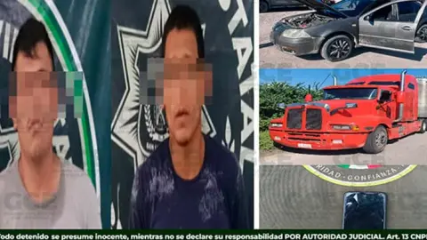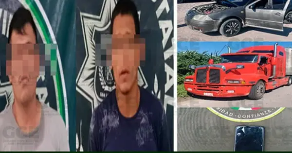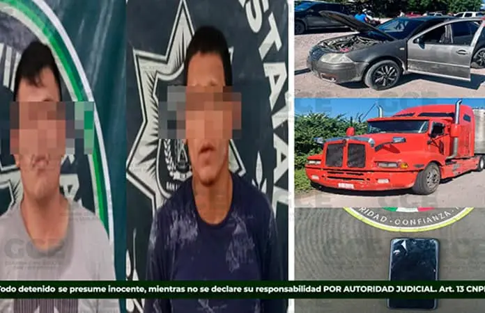 Ambos sujetos fueron sorprendidos a la altura de la colonia Mirasol del municipio de Tamuín, cuando viajaban en un automóvil Volkswagen Jetta color gris, modelo 2005, con el cual habrían interceptado a un camión cargado con ganado bovino para intentar extorsionar a su conductor.