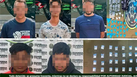 De igual manera, mediante la Base de Operaciones Mixta Interinstitucional (BOMI), en la zona centro del municipio de Villa de Arriaga, se detuvo a Irving "N" de 20 años y a Juan "N" de 19 años, luego de asegurarles 40 dosis de metanfetaminas.