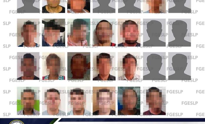 La Fiscalía General del Estado de San Luis Potosí (FGESLP), por medio de su Policía de Investigación (PDI), llevó a cabo la detención de 27 personas de las cuales veinte fueron aseguradas por medio de orden de aprehensión, una por orden de reaprehensión y seis personas más en flagrancia, esto en el periodo que comprende la última semana del mes de julio del presente año.