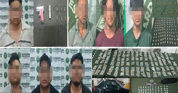 En acciones se seguridad, la Guardia Civil Estatal detuvo a siete presuntos objetivos generadores de incidencias delictivas en distintos municipios, además de asegurar droga, un arma de fuego y recuperó vehículos con reporte de robo.