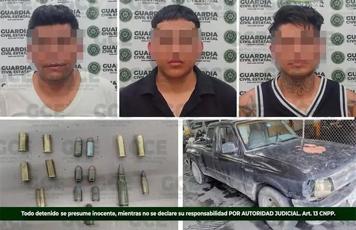 Las labores preventivas estatales en la capital potosina, derivaron en la detención de Juan "N" de 52 años, Jordi "N" de 22 años y Juan "N" de 30 años, quienes fueron detenidos en la calle de Ricardo Flores Magón y Aquiles Serdán, en la colonia Mártires de la Revolución.
