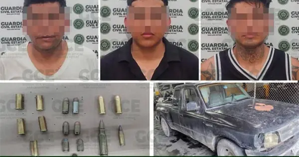Elementos de la Guardia Civil Estatal, realizaron la detención de tres masculinos, señalados de haber robado del interior de un domicilio en la colonia Mártires de la Revolución y haber disparado un arma de fuego.