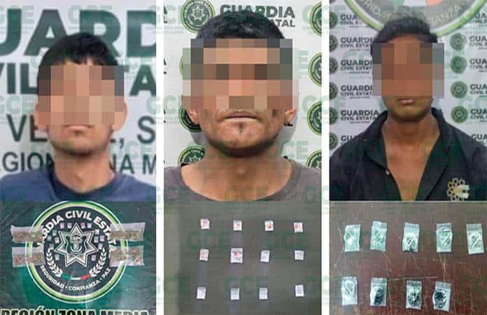 En operativos para el combate al narcomenudeo, fueron capturados tres presuntos objetivos criminales vinculados a la venta de droga para diferentes células criminales, esto por parte de elementos de la Guardia Civil Estatal.