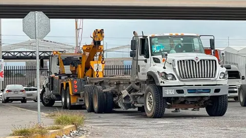Según los primeros reportes, el camión circulaba con dirección hacia el distribuidor Juárez. Al llegar a la entrada de La Pila, el conductor realizó un giro a la izquierda a exceso de velocidad, lo que ocasionó que la caja se desprendiera de su soporte principal.