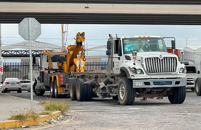 La tarde de este miércoles, alrededor de las 15:30 horas, un camión de transporte de materiales desechables industriales sufrió un incidente en la lateral de la carretera 57, justo en la entrada de la delegación La Pila, cuando la caja del vehículo se desprendió del riel del chasis.