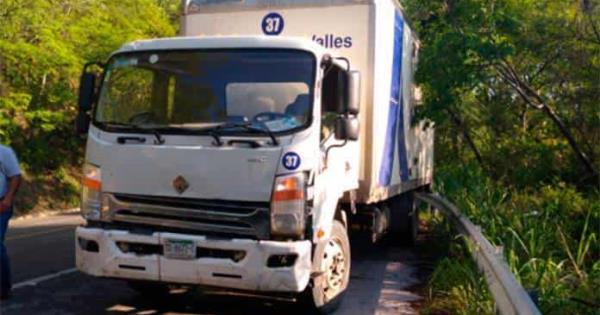 Supuestamente un camión marca International color blanco, propiedad de una abarrotera, era conducido con dirección de Valles hacia Tamasopo.