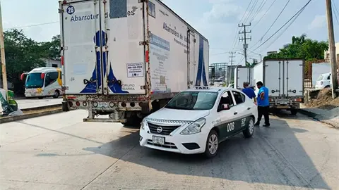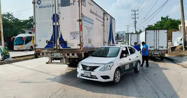El taxista tuvo que frenar bruscamente e incluso giró el volante para intentar esquivar la unidad pesada, pero su vehículo dio un giro sobre su eje, y fue en ese momento que la parte posterior del camión impactó al taxi, proyectándolo contra la caja.