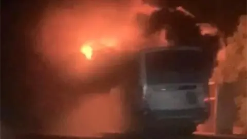 De acuerdo con el reporte, el incidente ocurrió alrededor de las 03:00 horas, cuando el conductor de la unidad perdió el control hacia su derecha, impactándose contra un poste. Tras el choque, el vehículo comenzó a incendiarse.