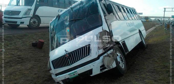 Una unidad del transporte de personal se salió de la carretera y quedó en la cuneta de ambos carriles de la Carretea 57; alrededor de 30 trabajadores resultaron afectados por el percance.