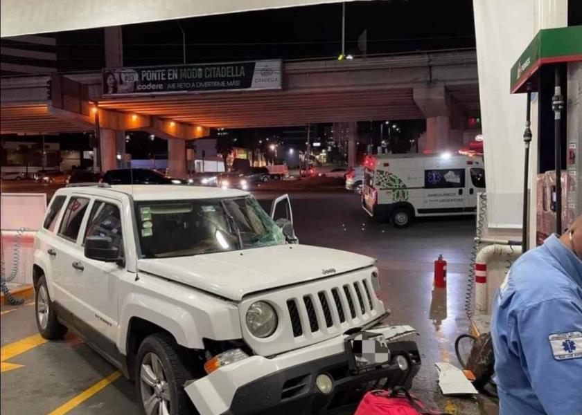 Un camión de volteo chocó a una camioneta de marca Jeep de color blanco. El impacto fue tan fuerte que proyectó al vehículo contra la gasolinera que se ubica en la avenida Chapultepec esquina con el bulevar Rocha cordero.