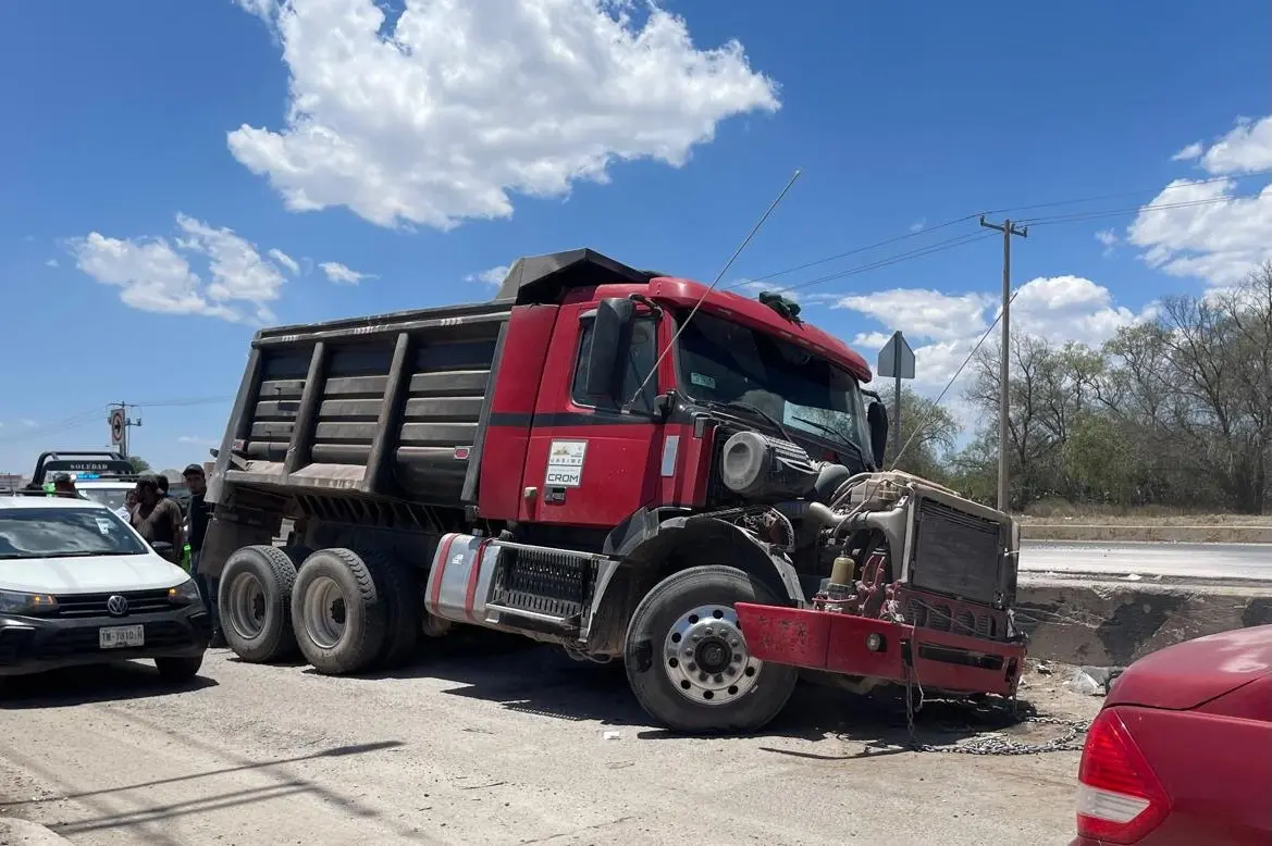 Daños materiales fue el saldo de un accidente de un camión cargado de grava en el kilómetro 14 de la carretera a Matehuala y entrada a La Palma, con dirección al norte.