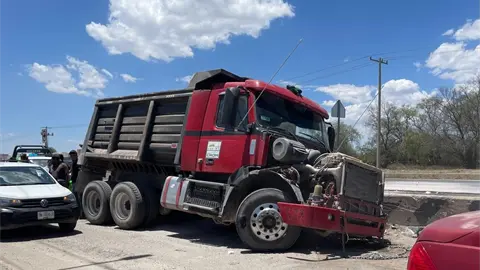 Chofer de camión materialista sufre percance en rúa a Matehuala