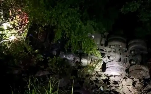 La unidad, un camión tipo quinta rueda conducido por Emanuel Castillo, de 53 años de edad, se salió del camino cerca del ejido El Abra, en el municipio de Ciudad Mante, Tamaulipas, y terminó volcada con las llantas hacia arriba al fondo de un barranco.