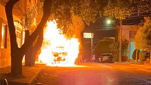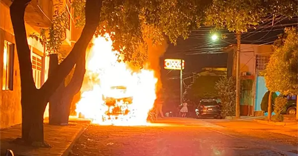 El siniestro se suscitó la noche de este martes, sobre la calle Zaragoza, entre 30 de Mayo y Río Bravo, donde vecinos reportaron al Sistema de Emergencias 911 que una camioneta Nissan, de modelo reciente, estacionada en la vía pública, estaba envuelta en llamas.